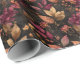 Papier d'emballage élégant à motifs botaniques de couleur Bourgogne, or et noir. Parfait pour les anniversaires, les mariages, les enterrements de vie de jeune fille, Thanksgiving, l'automne, l'hiver et Noël.