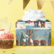 This festive design captures the joyful spirit of the holiday season, featuring an adorable dogs.Nestled in a winter wonderland, complete with a decorated Christmas tree, and beautifully wrapped presents. Snowflakes gently fall, adding a magical touch to the scene, while the vibrant colors of the holiday decorations create a warm and cheerful atmosphere.
