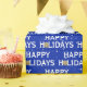 Joyeux texte de vacances avec feuille d'or Arc de Noël sur arrière - plan bleu avec flocons de neige. La couleur Arrière - plan peut être modifiée.