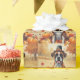 Un tableau aquarelle d'un chien gai assis au milieu d'un tas de feuilles d'automne vibrantes, entouré de minuscules citrouilles et de glands épars. Le chien porte un petit casquette pèlerin et des poutres de joie, capturant l'esprit de Thanksgiving. Dans l'arrière - plan, les champs de moissons et les arbres dorés créent une ambiance campagnarde paisible. Des textures douces et des tons d'automne chauds et feutrés confèrent à la scène une atmosphère cosy et nostalgique parfaite pour célébrer la beauté de la saison.