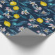 Papier Cadeau Branches de citron avec fleurs et fruits sur le bl