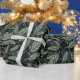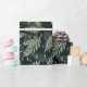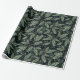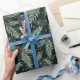 Ce papier d'emballage élégant présente de multiples branches de pin de Noël dans différentes nuances de vert, sur un arrière - plan noir foncé.
