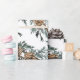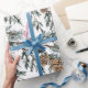 Un papier d'emballage neutre pour les vacances d'hiver, avec une scène aquarellée de branches de genièvre avec des cônes et un léger dépoussiérage de flocons de neige. Un papier cadeau de Noël classique papier d'emballage neutre.