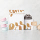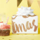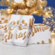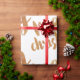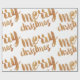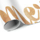 Papier d'emballage en bronze et blanc avec Joyeux Noël écrit dans une police calligraphique. Note : le bronze n'est qu'une couleur de bronze imprimée.