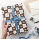 Découvrez ce papier d'emballage à la mode brun et blanc à damiers motif, parfait pour envelopper ce cadeau spécial pour vos proches. Il présente des fleurs de lis, des fleurs vectorielles du coeur, et le logo du designer