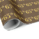 Ce papier d'emballage présente le numéro ordinal "65e" avec une apparence de faux or. Il dispose également d'un arrière - plan marron. Il pourrait être utilisé pour envelopper un cadeau offert pour le soixante-cinquième anniversaire de quelqu’un, ou peut-être pour le soixante-cinquième anniversaire de mariage d’un couple marié, ou pour un autre 65e événement ou occasion. [~Z0000024]