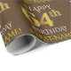Ce design papier d'emballage comporte un message comme "HAPPY 64th BIRTHDAY", avec le "64th" ayant une apparence fausse/imitation or. Il possède également un nom personnalisé et un arrière - plan de couleur marron. Il pourrait peut-être être utilisé pour envelopper les cadeaux donnés pour le soixante-quatrième anniversaire de quelqu’un. [~Z0000133]