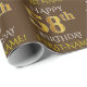 Ce design papier d'emballage comporte un message comme "HAPPY 58th BIRTHDAY", avec le "58th" ayant une apparence fausse/imitation or. Il possède également un nom personnalisé et un arrière - plan de couleur marron. Il pourrait peut-être être utilisé pour envelopper les cadeaux donnés pour le cinquante-huitième anniversaire de quelqu’un. [~Z0000133]