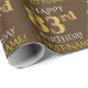 Ce design papier d'emballage comporte un message comme "HAPPY 83rd BANTHDAY", avec le "83rd" ayant une apparence fausse/imitation or. Il comporte également un nom qui peut être personnalisé, et un arrière - plan de couleur marron. Il pourrait peut-être être utilisé pour envelopper les cadeaux donnés pour le quatre-vingt-troisième anniversaire de quelqu’un. [~Z0000133]