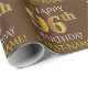 Ce design papier d'emballage comporte un message comme "HAPPY 96th BIRTHDAY", avec le "96th" ayant une apparence fausse/imitation or. Il comporte également un nom qui peut être personnalisé, et un arrière - plan de couleur marron. On pourrait peut-être l’utiliser pour envelopper les cadeaux donnés pour le quatre-vingt-seizième anniversaire de quelqu’un. [~Z0000133]