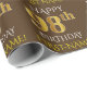 Ce design papier d'emballage comporte un message comme "HAPPY 98th BIRTHDAY", avec le "98th" ayant une apparence fausse/imitation or. Il possède également un nom personnalisé et un arrière - plan de couleur marron. Il pourrait peut-être être utilisé pour envelopper les cadeaux donnés pour le quatre-vingt-dix-huitième anniversaire de quelqu’un. [~Z0000133]