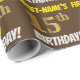 Ce papier d’emballage comporte un message comme "FIRST-NAME’S 15th BIRTHDAY!", avec le "15th" ayant une apparence de couleur fausse/imitation or, et avec le nom et "BIRTHDAY" dans une police amusante et audacieuse. Le nom peut être personnalisé, et l'arrière - plan est de couleur marron. Un papier comme celui-ci pourrait peut-être être utilisé pour envelopper les cadeaux d'anniversaire donnés à quelqu'un pour célébrer son quinzième anniversaire. [~Z0000211]
