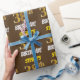 Ce design papier d’emballage comporte un message comme "38e anniversaire de STEVEN!", avec le "38e" ayant une apparence de couleur fausse/imitation or, et avec le nom et "anniversaire" dans une police amusante et audacieuse. Le nom peut être customisé, et l'arrière - plan est de couleur marron. Un papier comme celui-ci pourrait peut-être être utilisé pour envelopper les cadeaux d'anniversaire donnés à quelqu'un pour célébrer son trente-huitième anniversaire. [~Z0000211]