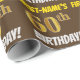 Ce papier d’emballage comporte un message comme "FIRST-NAME’S 60th BIRTHDAY!", avec le "60th" ayant une apparence de couleur fausse/imitation or, et avec le nom et "BIRTHDAY" dans une police amusante et audacieuse. Le nom est personnalisable et l'arrière - plan est marron. Un papier comme celui-ci pourrait peut-être être utilisé pour envelopper les cadeaux d'anniversaire donnés à quelqu'un pour célébrer leur soixantième anniversaire. [~Z0000211]