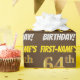 Ce papier d’emballage comporte un message comme "FIRST-NAME’S 64th BIRTHDAY!", avec le "64th" ayant une apparence de couleur fausse/imitation or, et avec le nom et "BIRTHDAY" dans une police amusante et audacieuse. Le nom peut être customisé, et l'arrière - plan est de couleur marron. Un papier comme celui-ci pourrait peut-être être utilisé pour envelopper les cadeaux d'anniversaire donnés à quelqu'un pour célébrer son soixante-quatrième anniversaire. [~Z0000211]