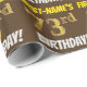 Ce papier d’emballage comporte un message comme "FIRST-NAME’S 73rd BIRTHDAY!", avec le "73rd" ayant une apparence de couleur fausse/imitation or, et avec le nom et "BIRTHDAY" dans une police amusante et audacieuse. Le nom peut être customisé, et l'arrière - plan est de couleur marron. Un papier comme celui-ci pourrait peut-être être utilisé pour envelopper les cadeaux d'anniversaire donnés à quelqu'un pour célébrer leur soixante-treize anniversaire. [~Z0000211]