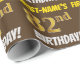 Ce papier d’emballage comporte un message comme "FIRST-NAME’S 82nd BIRTHDAY!", avec le "82nd" ayant une apparence de couleur fausse/imitation or, et avec le nom et "BIRTHDAY" dans une police amusante et audacieuse. Le nom peut être customisé, et l'arrière - plan est de couleur marron. Un papier comme celui-ci pourrait peut-être être utilisé pour envelopper les cadeaux d'anniversaire donnés à quelqu'un pour célébrer leur quatre-vingt-deuxième anniversaire. [~Z0000211]