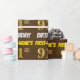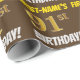 Ce papier d’emballage comporte un message comme "FIRST-NAME’S 91st BANTHDAY!", avec le "91st" ayant une apparence de couleur fausse/imitation or, et avec le nom et "BANTHDAY" dans une police amusante et audacieuse. Le nom peut être customisé, et l'arrière - plan est de couleur marron. Un papier comme celui-ci pourrait peut-être être utilisé pour envelopper les cadeaux d'anniversaire donnés à quelqu'un pour célébrer leur quatre-vingt-dix-unième anniversaire. [~Z0000211]