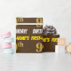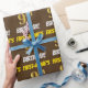 Ce papier d’emballage comporte un message comme "FIRST-NAME’S 9th BIRTHDAY!", avec le "9th" ayant une apparence de couleur fausse/imitation or, et avec le nom et "BIRTHDAY" dans une police amusante et audacieuse. Le nom peut être personnalisé, et l'arrière - plan est de couleur marron. Un papier comme celui-ci pourrait peut-être être utilisé pour envelopper les cadeaux d'anniversaire donnés à quelqu'un pour célébrer son neuvième anniversaire. [~Z0000211]