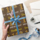 Ce design papier d’emballage comporte un message comme "10e anniversaire de prénom!", avec le "10e" ayant une apparence de couleur fausse/imitation or. Le nom peut être personnalisé, et l'arrière - plan est de couleur marron. Il pourrait peut-être être utilisé pour envelopper les cadeaux donnés pour le dixième anniversaire de quelqu’un. [~Z0000180]