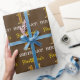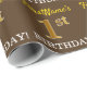 Ce design papier d’emballage comporte un message comme "1er ANNIVERSAIRE de FirstName!", le "1er" ayant une apparence de couleur fausse/imitation or. Le nom peut être personnalisé, et l'arrière - plan est de couleur marron. Il pourrait peut-être être utilisé pour envelopper les cadeaux donnés pour le premier anniversaire de quelqu’un. [~Z0000180]