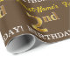 Ce design papier d’emballage comporte un message comme "2e anniversaire de prénom !", le "2e" ayant une apparence de couleur fausse/imitation or. Le nom peut être customisé, et l'arrière - plan est de couleur marron. Il pourrait peut-être être utilisé pour envelopper les cadeaux donnés pour le deuxième anniversaire de quelqu’un. [~Z0000180]