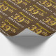 Ce design papier d’emballage comporte un message comme "39e anniversaire de Georgiana!", avec le "39e" ayant une apparence de couleur fausse/imitation or. Le nom peut être customisé, et l'arrière - plan est de couleur marron. Il pourrait peut-être être utilisé pour envelopper les cadeaux donnés pour le trente-neuvième anniversaire de quelqu’un. [~Z0000180]