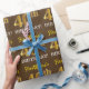 Ce design papier d’emballage comporte un message comme "40e anniversaire de prénom!", avec le "40e" ayant une apparence de couleur fausse/imitation or. Le nom peut être customisé, et l'arrière - plan est de couleur marron. Il pourrait peut-être être utilisé pour envelopper les cadeaux donnés pour le quarantième anniversaire de quelqu’un. [~Z0000180]