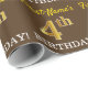 Ce design papier d’emballage comporte un message comme "4e anniversaire du prénom !", avec le "4e" ayant une apparence de couleur fausse/imitation or. Le nom peut être personnalisé, et l'arrière - plan est de couleur marron. Il pourrait peut-être être utilisé pour envelopper les cadeaux donnés pour le quatrième anniversaire de quelqu’un. [~Z0000180]