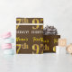 Ce design papier d’emballage comporte un message comme "FirstName’s 97th BIRTHDAY!", avec le "97th" ayant une apparence de couleur fausse/imitation or. Le nom peut être customisé, et l'arrière - plan est de couleur marron. Il pourrait peut-être être utilisé pour envelopper les cadeaux donnés pour le quatre-vingt-dix-septième anniversaire de quelqu’un. [~Z0000180]