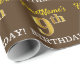 Ce design papier d’emballage comporte un message comme "FirstName’s 9th BIRTHDAY!", avec le "9th" ayant une apparence de couleur fausse/imitation or. Le nom peut être personnalisé, et l'arrière - plan est de couleur marron. Il pourrait peut-être être utilisé pour envelopper les cadeaux donnés pour le neuvième anniversaire de quelqu’un. [~Z0000180]