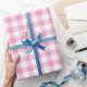 Motif chaleureux et douillet en vichy dans rose pastel et blanc, grand cadeau de vacances papier d'emballage. Customisez la couleur arrière - plan avec votre choix.