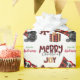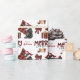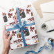 Le motif répété sur ce joli papier d'emballage de Noël est l'image d'un chien berger australien noir et blanc portant un chapeau de Père Noël rouge et blanc, avec un coussin plaid noir et rouge derrière lui, et un paquet cadeau coordonné avec un ruban doré à côté de lui. Il y a aussi un arc en plaid de buffle et le texte correspondant qui dit "JOY". Stylisé rouge et noir buffle texte plaid dit MERRY CHRISTMAS", et votre propre signature est dans deux champs pour vous de customiser.