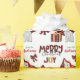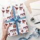 Le motif répété sur ce joli papier d'emballage de Noël est l'image d'un chien de taureau Terrier blanc portant un chapeau de Père Noël rouge et blanc, avec un coussin de buffle noir et rouge derrière lui, et un paquet cadeau coordonné avec un ruban d'or à côté de lui. Il y a aussi un arc en plaid de buffle et le texte correspondant qui dit "JOY". Stylisé rouge et noir buffle texte plaid dit MERRY CHRISTMAS", et votre propre signature est dans deux champs pour vous de customiser.