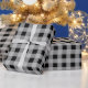 Ajoutez une touche moderne à vos cadeaux avec du papier d'emballage de vacances en plastique de buffle noir et gris, avec une typographie élégante pour une présentation de Noël élégante.
