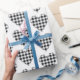 Papier Cadeau Buffle noir blanc Plaid Check Coeurs Pays