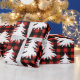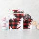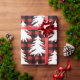 Papier d'emballage rustique avec motif d'arbres forestiers blancs. L'arrière - plan est noir buffle chèque plaid, mais la couleur rouge peut être changée. Terminez cette période de vacances dans un style rustique audacieux et sauvage ! Tiens-toi au milieu de cette pile de cadeaux !