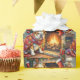 Papier Cadeau Bulldog Sitting by Fireplace with Christmas Lights