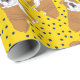 Envelopper les cadeaux pour les amoureux de les chiens et les propriétaires de chiens dans le style avec ce papier d'emballage à motifs. Cet emballage cadeau présente des illustrations de style réaliste de bulldogs anglais contre un arrière - plan jaune vif accentué par des pois bleu marine.