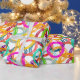 Ce papier d'emballage a une conception géométrique de trois cercles imbriqués et répartis dans le design en plusieurs couleurs.