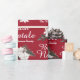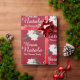 Ce papier d'emballage cadeau de vacances présente un thème de Noël italien avec des fleurs d'aquarelle sur un arrière - plan rouge foncé. L'expression Buon Natale, qui se traduit par "Joyeux Noël" en Italie, est imprimée dans une police de texte élégante sur la partie inférieure. Un bouquet floral d'hiver de poinsettias blanches, branches de pin, cône de pin et feuillage d'hiver est représenté au-dessus de l'accueil natale du bouillon. Un exemple de nom de famille est imprimé en bas, que vous pouvez personnaliser pour inclure votre propre nom personnalisé ou un autre texte.
