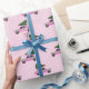 Papier Cadeau Cabine rose Taxi sapin Motif Noël rose