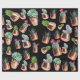 Papier Cadeau Cactus et succulents dans des pots d'or Roses