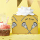 Emballage cadeau de crosse ou décoration de fête lax avec bâtons de crosse sur fond or. Modifier le texte pour ajouter le nom du joueur ou de l'entraîneur de l'équipe.