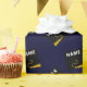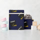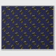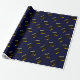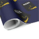 Papier cadeau de fin d'études unique avec casquette de diplômé noire et dorée sur fond bleu marine. Modifiez le texte pour ajouter le nom du diplômé et l'année de la promotion.