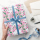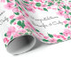 Papier d'emballage de félicitations de mariage avec fleurs de cerisier rose et noms en finition mate ou semi-brillante