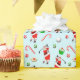 Emballage cadeau de vacances sur le thème du golf unique mettant en vedette le golfeur de Père Noël entouré de gâteries de Noël et de flocons de neige.
