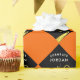 Emballage de cadeau de graduation créatif et décoration de fête de graduation avec un motif de design de chapeau de graduation noir et or sur fond orange. Modifiez le texte pour ajouter le nom du diplômé.