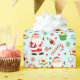 Fêtes de Noël de football créatives emballage cadeau ou décoration de fête avec quarterback Père Noël jouant au football entouré de flocons de neige, bonbons de Noël et biscuits.