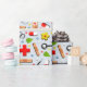 Emballage-cadeau créatif sur le thème médical ou décor de fête avec des fournitures de soins de santé et des fleurs illustration pour médecin, infirmière ou autre professionnel de la santé.